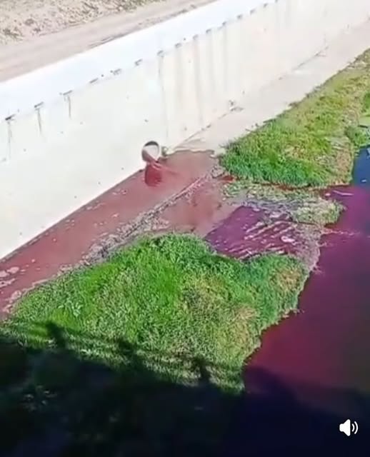 En registros audiovisuales captados desde los puentes locales, se observa con total impunidad cómo un líquido denso y purpúreo emana directamente de uno de los desagües pluviales, mezclándose con el cauce y afectando la flora de las riberas. Este incidente no es solo un "cambio de color", es una evidencia flagrante del vertido de sustancias químicas cuya composición y toxicidad aún se desconocen, pero que representan una amenaza directa para el ecosistema fluvial y la salud de los vecinos.