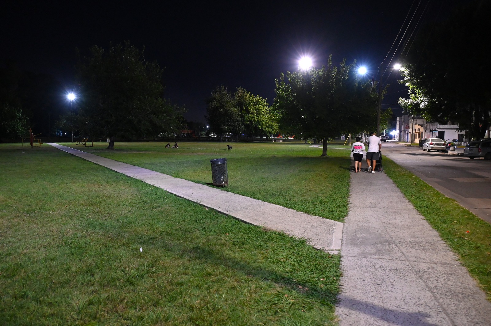 Avanzan las mejoras de iluminación en calle Las Heras y en el sendero del parque